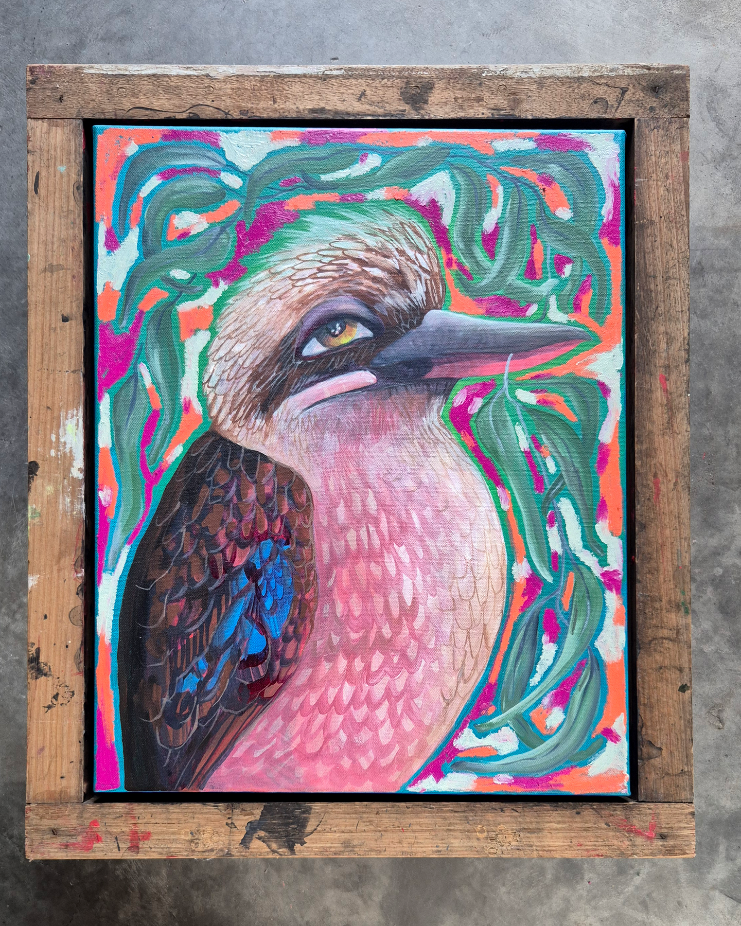 "Surrounded by gum leaves - a symbol of healing protection and resilience, this kookaburra is a protective force, who has a strong voice and will sit by to keep watch over you."